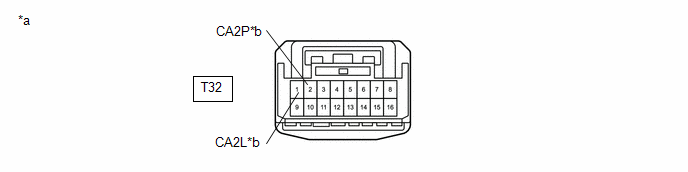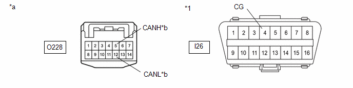 Front view of wire harness connector (to No. 14 Global CAN Junction Connector) |