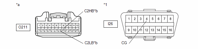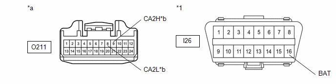 Front view of wire harness connector (to No. 13 Global CAN Junction Connector) |