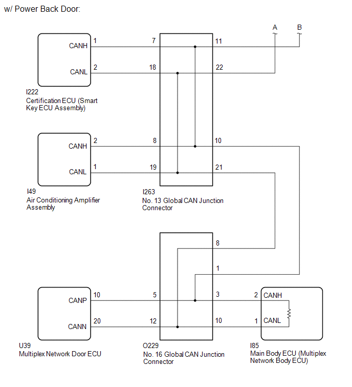 CHECK FOR SHORT IN CAN BUS LINES (NO. 16 GLOBAL CAN JUNCTION CONNECTOR - MULTIPLEX NETWORK DOOR ECU) |