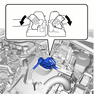 | (b) Check the connection condition of the low voltage connectors of the inverter with converter assembly and the contact pressure of each terminal. Check the terminals for deformation, and the connector for water and foreign matter. Click here NOTICE: Before disconnecting the connector, confirm that it is properly connected by checking that the claws of the lock levers are engaged and that the connector cannot be pulled off. OK: - The connector is connected securely. - The terminals are not deformed and are connected securely. - No water or foreign matter in the connector. Result: