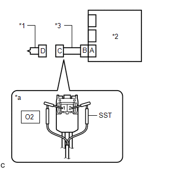 (b) Connect the white wire side of SST (resistance 2.1 Ω) to connector C.