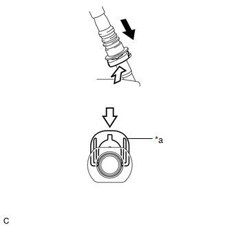 (2) While holding the retainer at the positions shown in the illustration, pull up the retainer to disengage the lock claws.