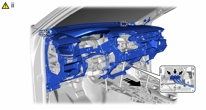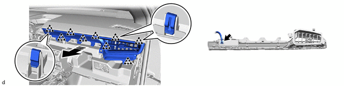 (2) Disengage the guides to remove the instrument panel safety pad sub-assembly as shown in the illustration.