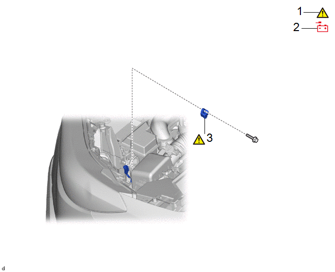 (2) Check that the cable is disconnected from the negative (-) auxiliary battery terminal.