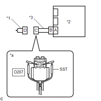 (b) Connect the white wire side of SST (resistance 2.1 Ω) to connector C.