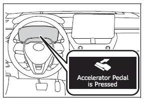 When driving at a low speed, if the accelerator pedal is strongly depressed and the system determines that there is a possibility of a collision, engine output will be restrained or the brakes will be applied weakly to restrict acceleration. During operation, a buzzer will sound and a warning indicator and message will be displayed on the multi-information display.